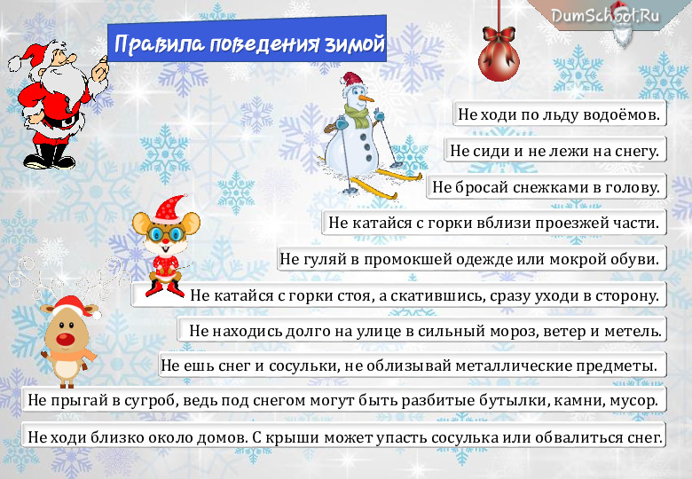 - Контроль и забота: Следите за состоянием детей, они мерзнут быстрее взрослых. Не разрешайте им сидеть на снегу или холодных поверхностях.